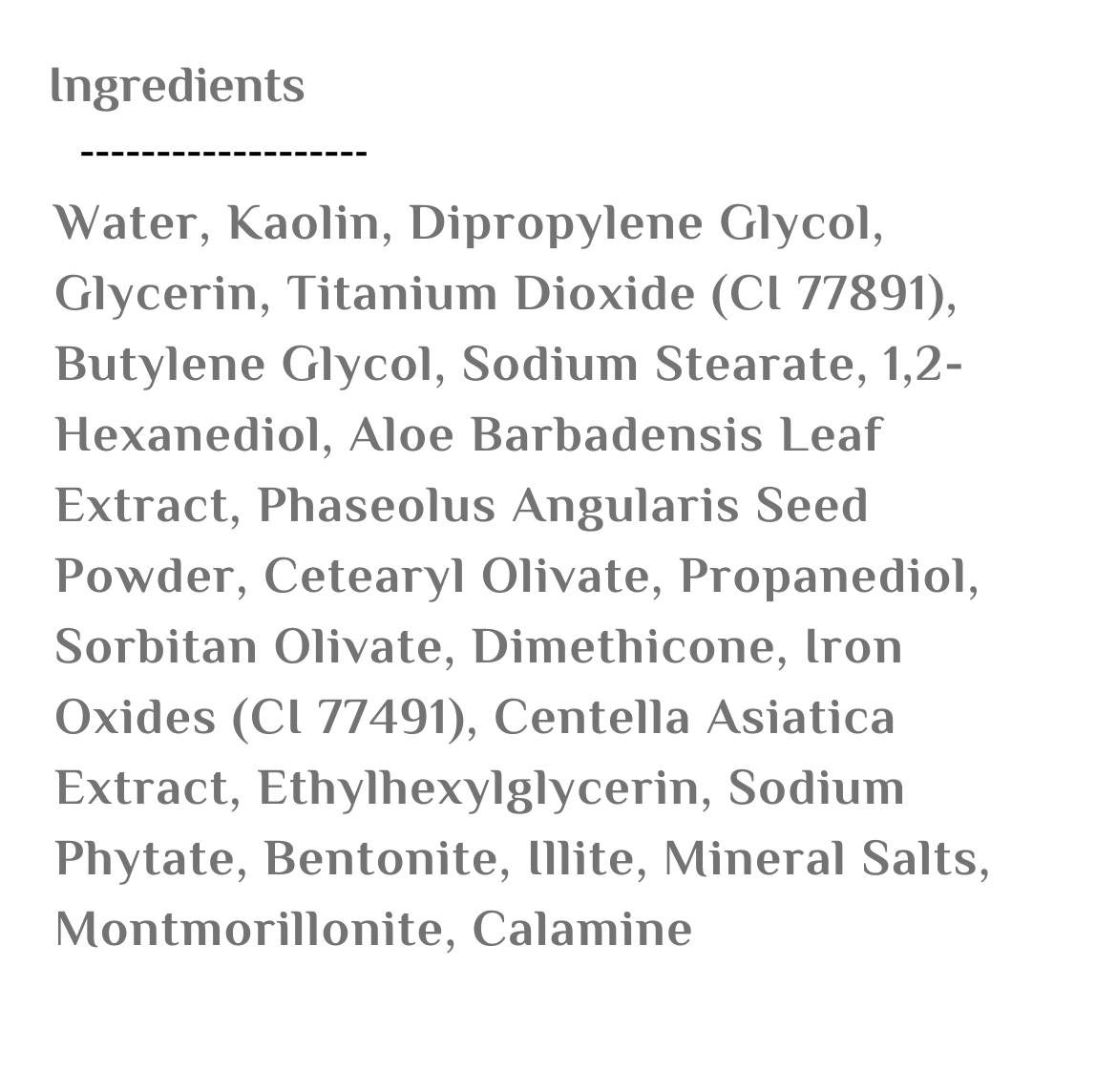 سينتيلا, كاولين, مستخلص الالوفيرا