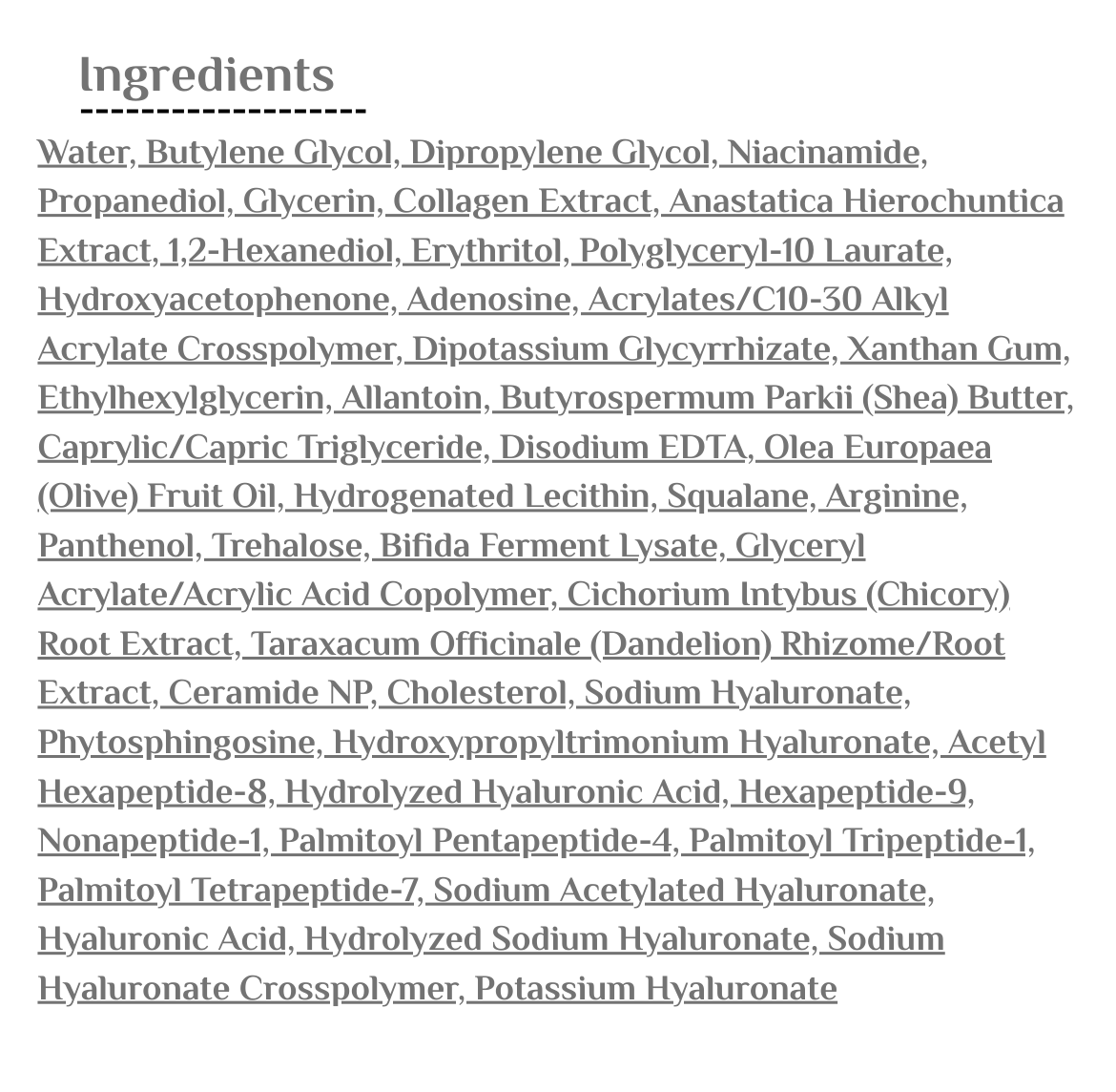 كولاجين نباتي (Collagen Extract): يعزز مرونة البشرة ويزيد من ترطيبها.