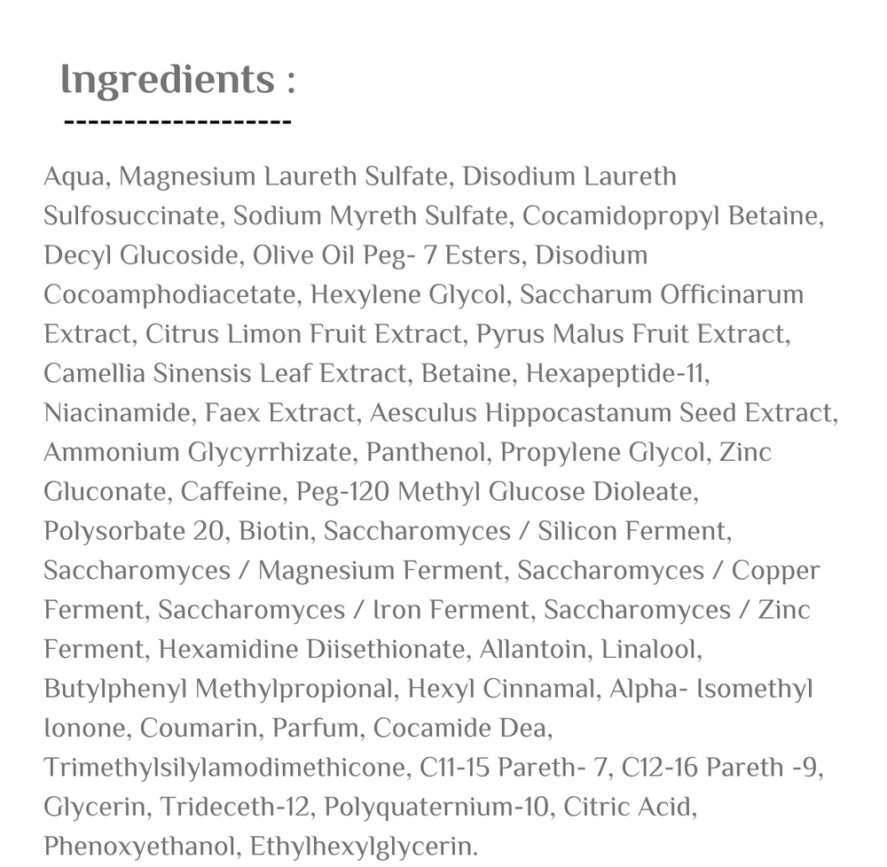 زيت الزيتون, بانتينول, نياسيناميد, كافيين.