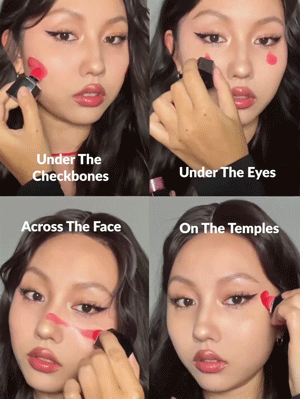 ابتسمي في المرآة لإبراز تفاحتي الخدين، وهي المنطقة التي ستطبقين عليها البلاش.طبقي البلاش بخفة: ضعي البلاش على تفاحتي الخدين بحركات دائرية خفيفة، مع التركيز على المنطقة الخارجية من الخد والتحرك نحو خط الشعر.