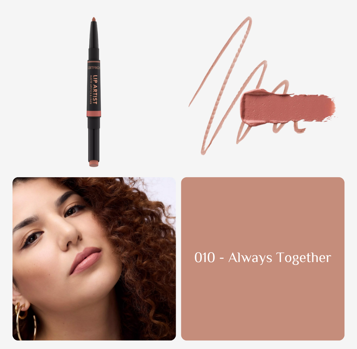 ثنائي متناسق يجمع بين قلم تحديد شفاه داكن وأحمر شفاه أفتح، يمنحك شفاهًا محددة وجذابة بسهولة.
