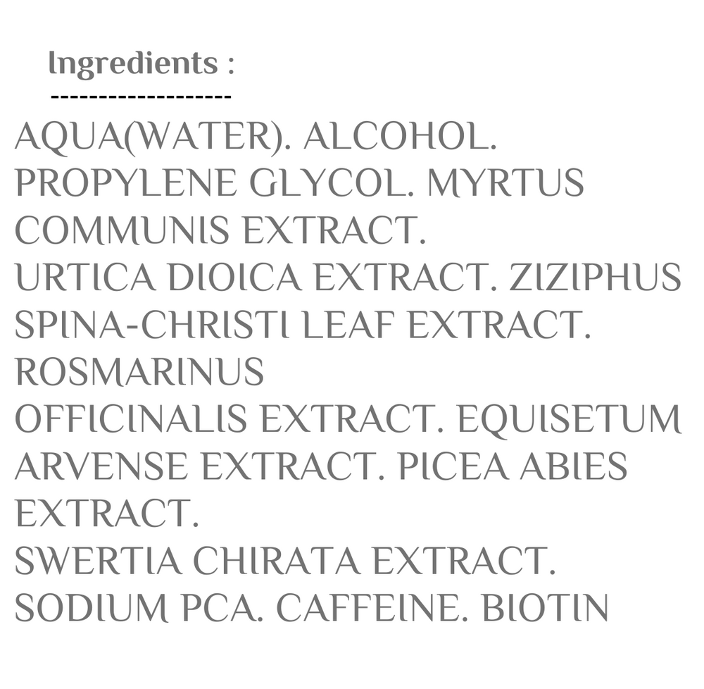 يزيد من نمو واستقلاب خلايا الشعر ويعزز الدورة الدموية في فروة الرأس، يحتوي على البيوتين والكافيين و7 مستخلصات نباتية سحرية ضرورية لنمو الشعر، يخلق البيئة المثالية لشعر كثيف ولامع وصحي، يقلل من القشرة. لجميع أنواع الشعر