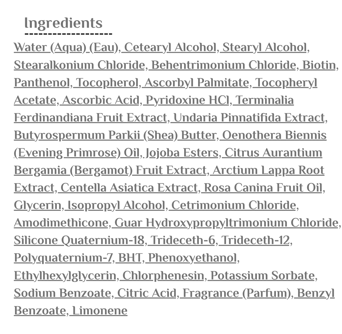 Jojoba Esters: يرطّب الشعر ويمنع التشابك والتقصف.