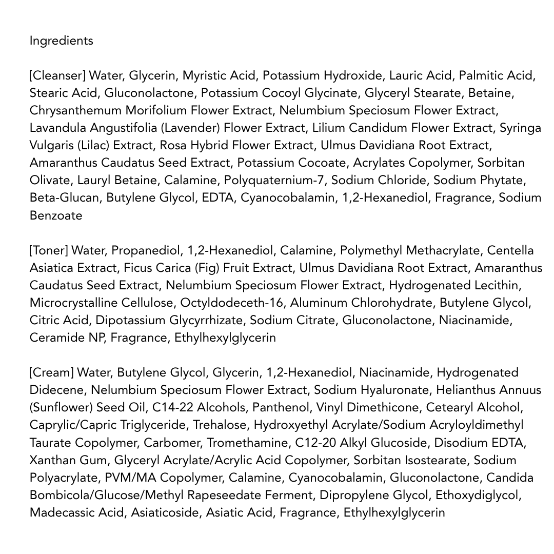 التهدئة: استخدمي كريم التهدئة والمرطب الموجود في المجموعة على البشرة الجافة والمتهيجة لتحسين مظهرها ومنحها راحة فورية.