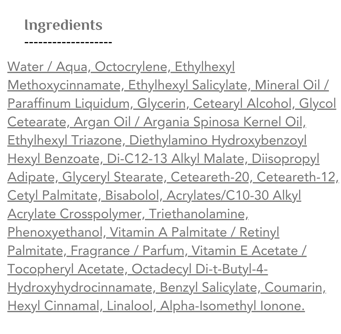 استعيدي نضارة بشرتك مع كريم مضاد للتجاعيد غني بمزيج فعّال من الريتينول (فيتامين A)، فيتامين اي، زيت الأرجان، وعامل حماية من الشمس (SPF) لحماية البشرة من أضرار الأشعة فوق البنفسجية.