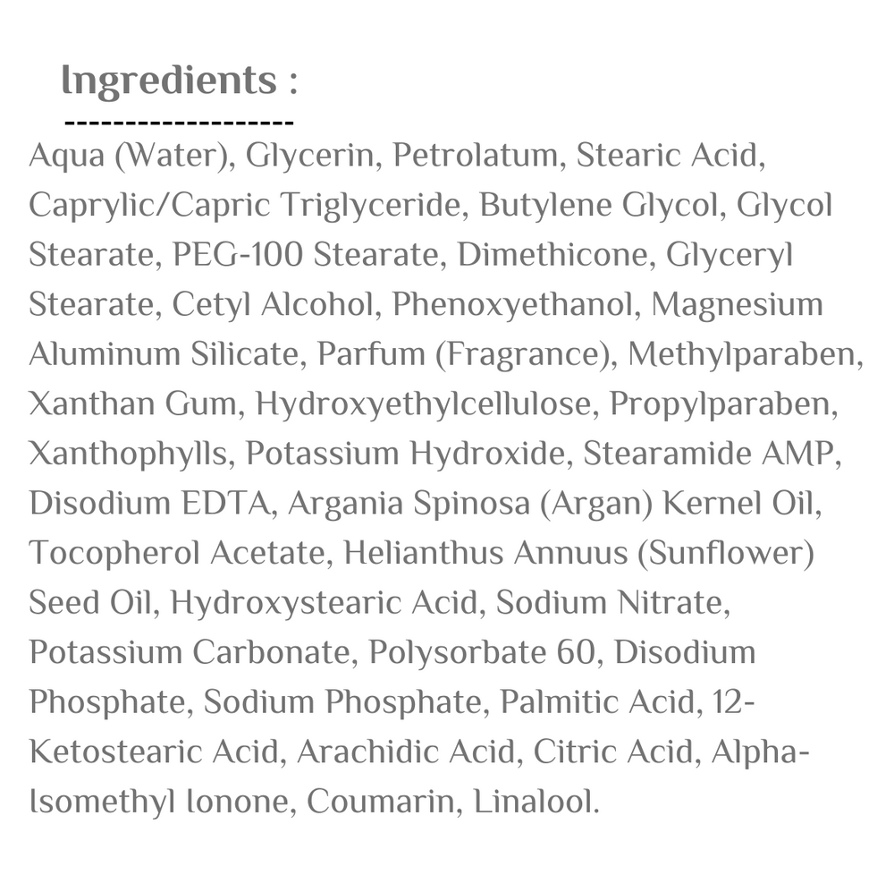 المكونات الاساسية:غليسرين ولانولين وزيت الارغان.