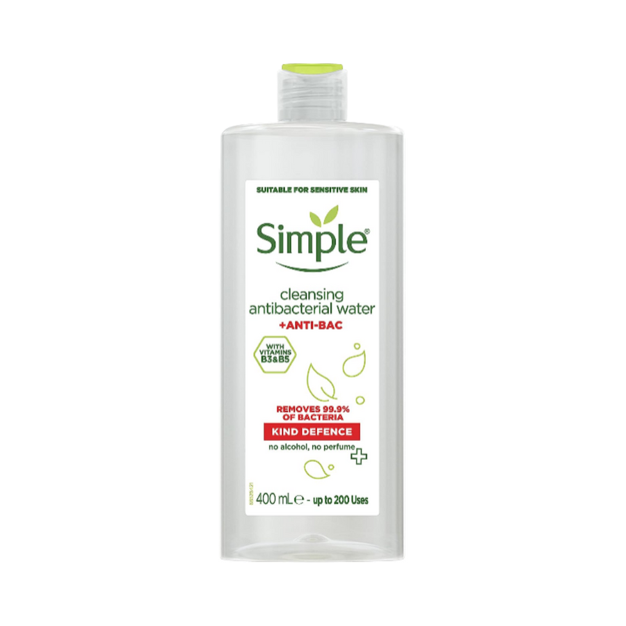 Simple Kind Defence +ANTI-BAC Antibacterial Cleansing Water - 400ml | سمبل منظف ماء ميسيلر المضاد للبكتيريا - 400 مل