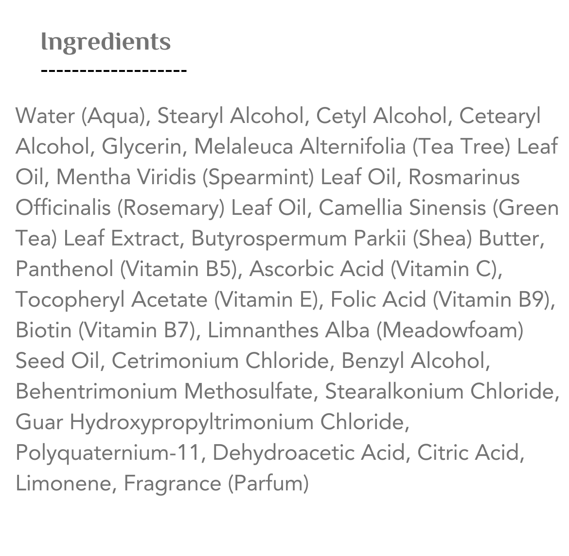 الترطيب الذي يحتاجه شعرك وفروة رأسك من دون أي ثِقَل—من قال إنك لا تستطيعين الحصول على كل شيء؟ يجمع هذا الكونديشنر بين زيت شجرة الشاي المنقّي، وإكليل الجبل المُجدِّد، والشاي الأخضر المهدّئ، مع زبدة الشيا الغنية لتوفير ترطيب يعيد الحيوية للشعر ويهدّئ فروة الرأس الجافة دون أن يجعل الشعر دهنيًا. تمت تقويته أيضًا بمجمّع فيتامينات 5X للحصول على شعر صحي بسهولة. مناسب للرجال والنساء، آمن على الشعر المصبوغ، وخفيف على كل أنواع الشعر.