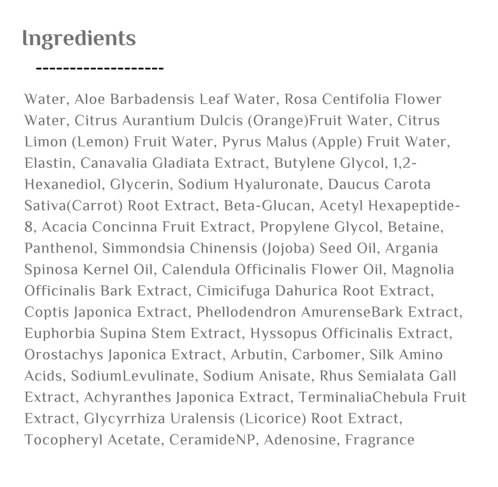 الوفيرا, مستخلص الورد, زيت الجوجوبا, مستخلص عرق السوس, سيراميد, اربوتين
