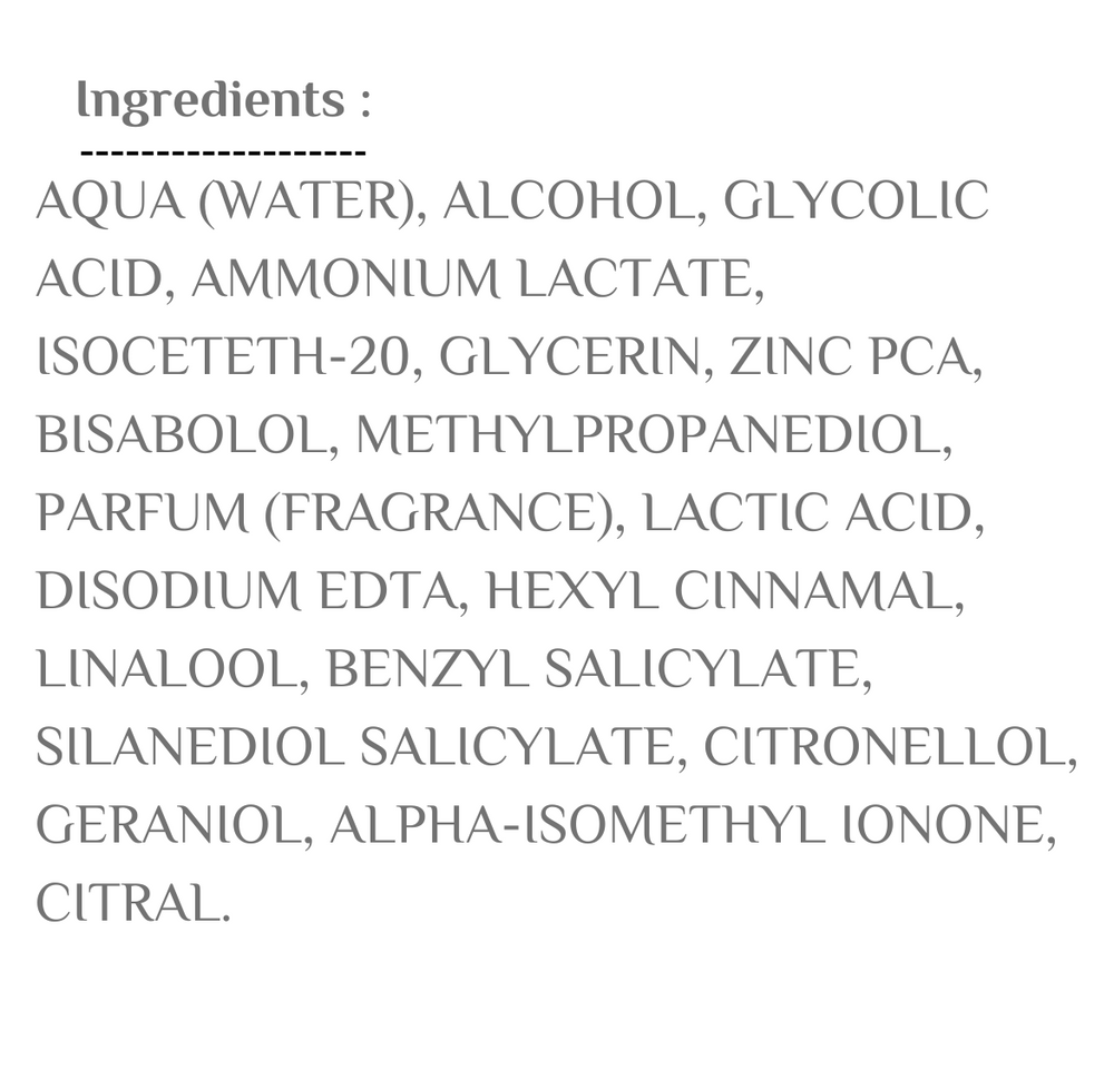 المكونات الاساسية:غلايكوليك أسيد و زنك و لاكتك وسالسيلات .