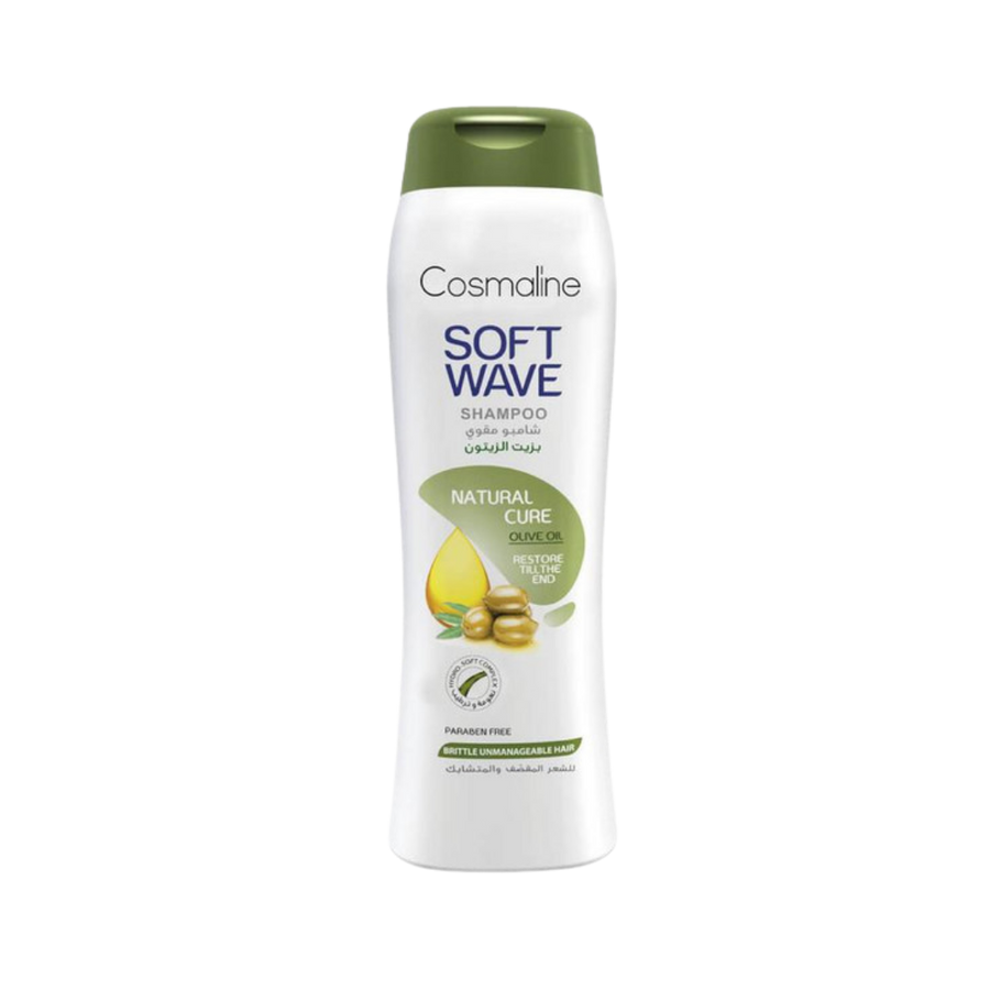 COSMALINE Soft Wave Natural Cure Shampoo For Brittle Unmanageable Hair – 400ml | كوزمالين شامبو للشعر الهايش و المتقصف بزيت الزيتون - 400 مل