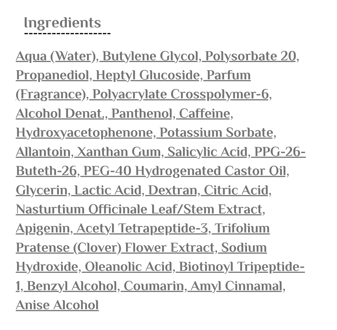 Capixyl™ (مستخلص البرسيم الأحمر + الببتيدات): يقلل تساقط الشعر ويعزز نموه ليبدو أكثر كثافة.