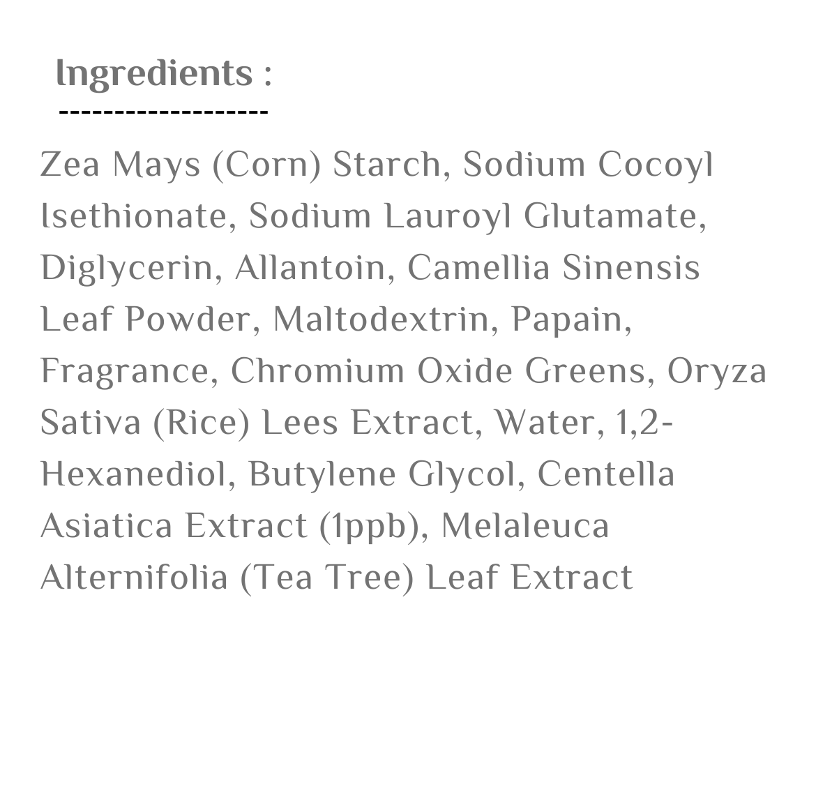 توفر جزيئات البودرة الدقيقة تقشيرًا لطيفًا، حيث تزيل خلايا الجلد الميتة والشوائب دون التسبب في تهيج.