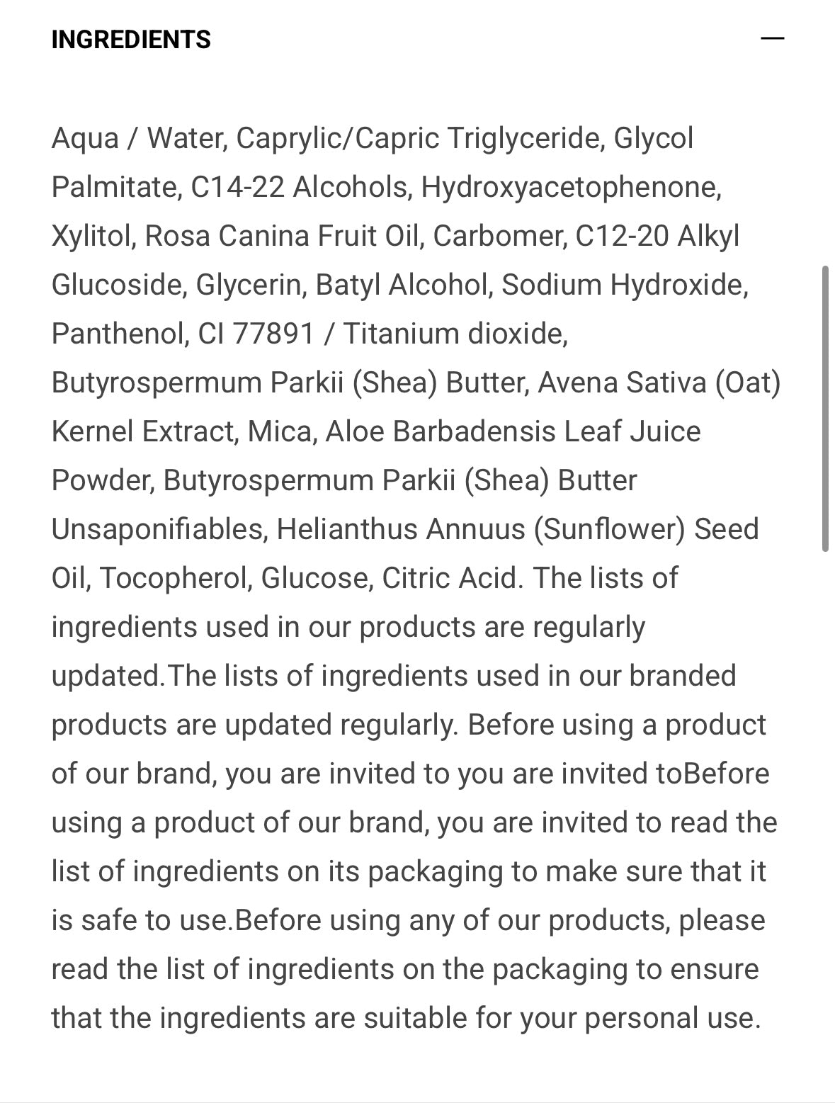ماء الورد، زبدة الشيا، مستخلص الشوفان، الوفيرا