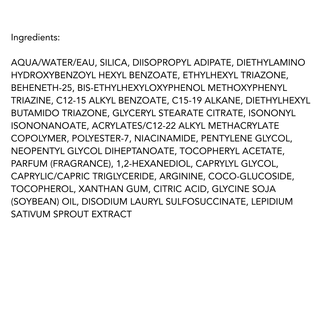 واقي شمس كيميائي يوفر حماية شمسية عالية جدًا بفضل تركيبته الفريدة التي تجمع بين الفلاتر الشمسية المتطورة والتكنولوجيا المضادة للأكسدة. تتميز تركيبته السائلة بلمسة نهائية غير لامعة، مما يجعله مثاليًا للبشرة المختلطة والدهنية. يتم امتصاصه بسرعة دون ترك أي أثر دهني أو أبيض، مما يوفر حماية فعّالة ومظهراً طبيعياً طوال اليوم.