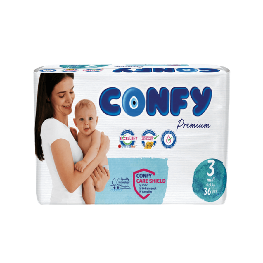 confy premium 3 Midi 4_9 kg 54 Pcs| كونفي حفاضات اطفال لعمر 3 سنوات -54 قطعة