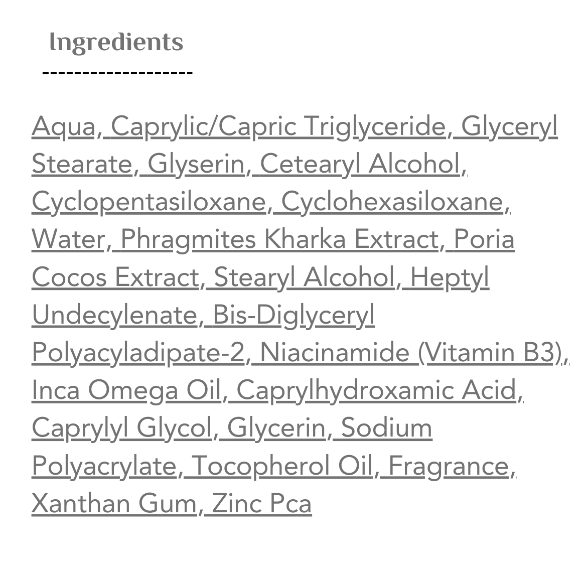 كريم مرطب ومغذي للبشرة يوفر ترطيباً طويل الأمد. يحتوي على زيت الماكا داميا ونياسيناميد وفيتامين E، مما يساعد على تجديد البشرة وحمايتها من الجفاف والتهيج.