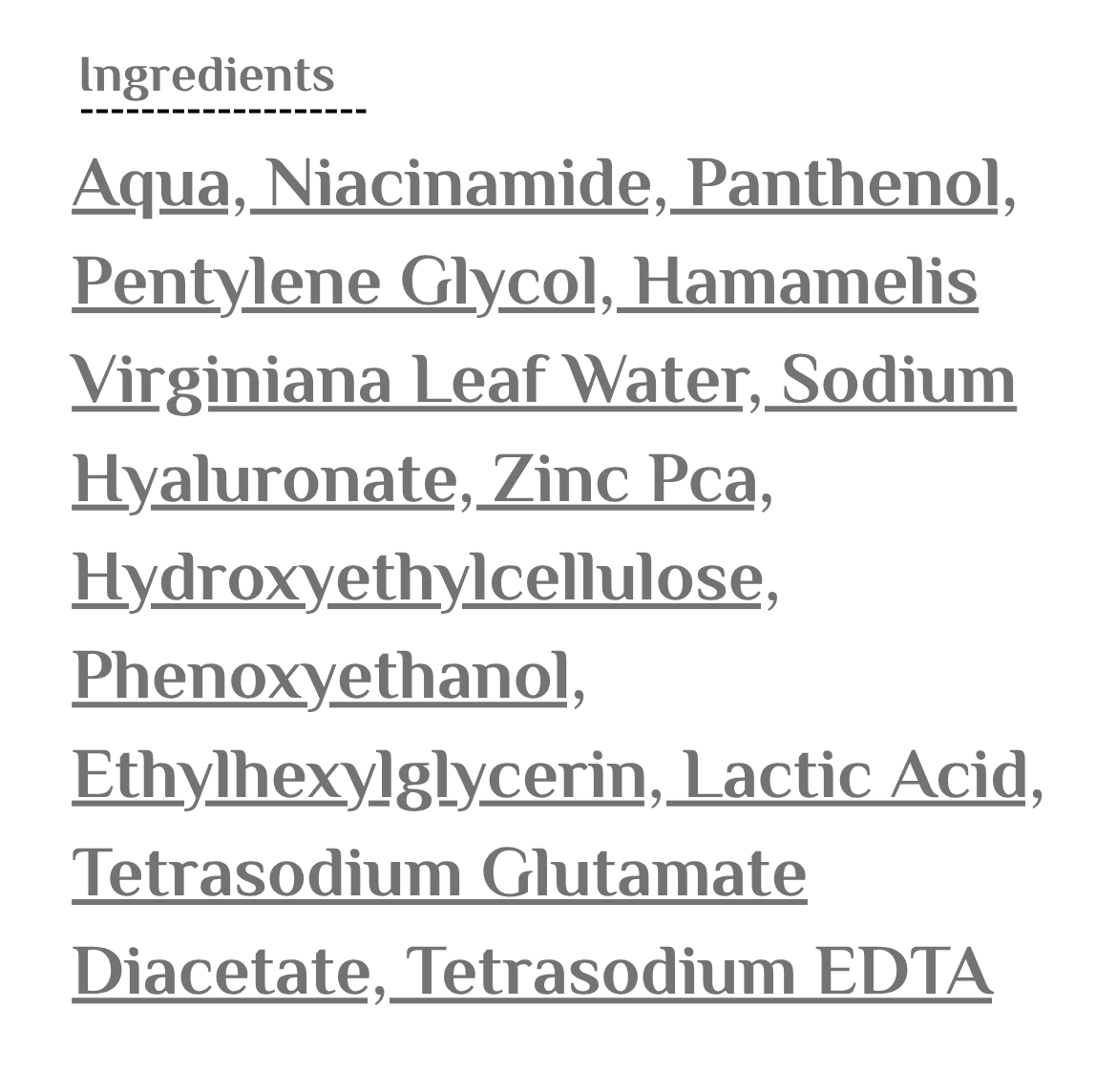 Zinc PCA: يهدّئ الالتهاب ويساعد على تقليل الحبوب والتحكّم في اللمعان.