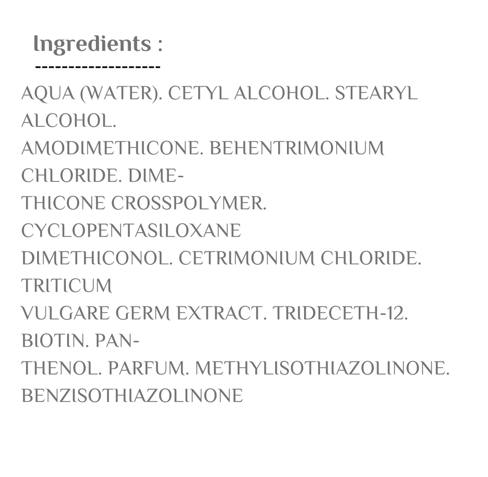 هو صيغة خفيفة الوزن مصممة للاستخدام اليومي الروتيني. هذا البلسم مخلوط بمستخلص جنين القمح والبيوتين والبانثينول لإعطاء الشعر لمعانًا وملمسًا حريريًا وسهولة التحكم.