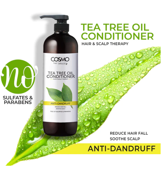 بلسم زيت شجرة الشاي المضاد للقشرة من كوزمو مصنوع من مكونات طبيعية تساعد في مكافحة القشرة وتتركك مع رائحة منعشة ونظيفة وعطرة. مما يجعله لطيفًا على الشعر المعالج باللون وآمنًا للاستخدام اليومي.