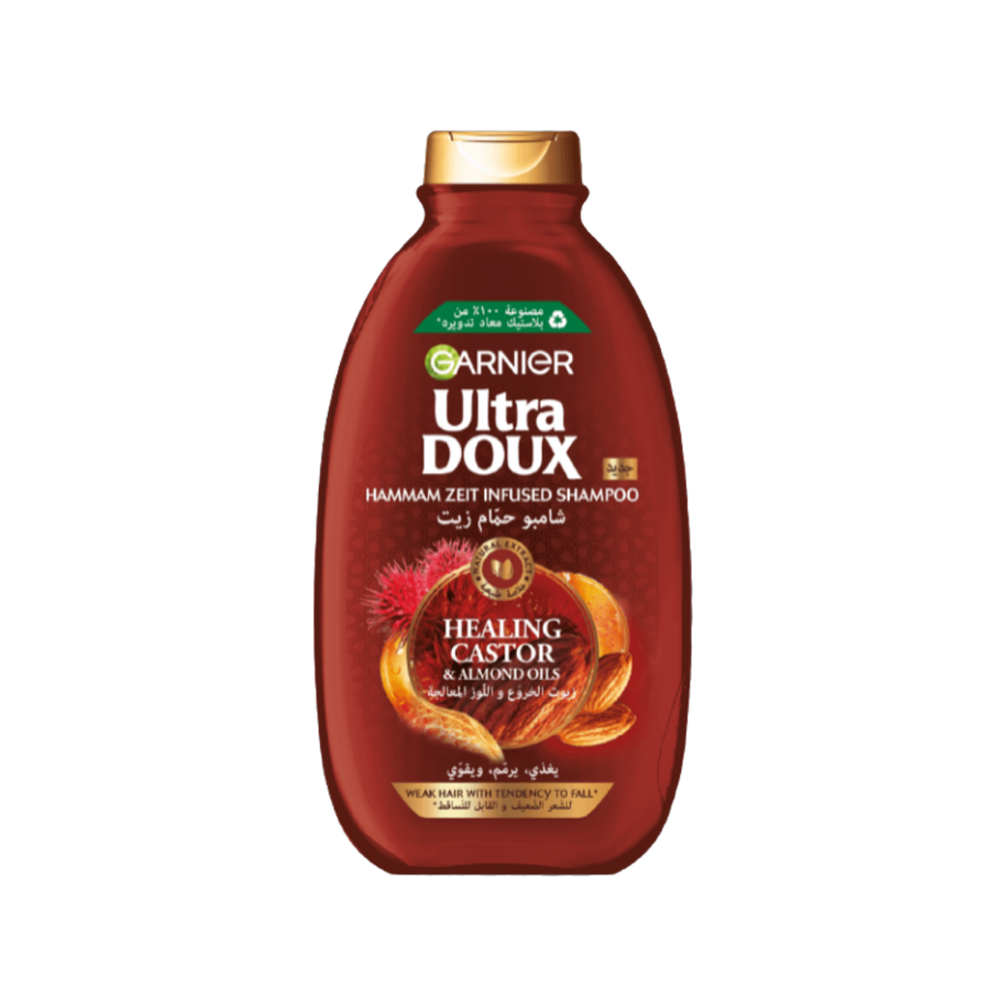 Garnier Ultra Doux Healing Castor & Almond Oil Shampoo - 400ml | غارنييه الترا دو شامبو بزيت الخروع وزيت اللوز للشعر الضعيف والقابل للتساقط - 400 مل