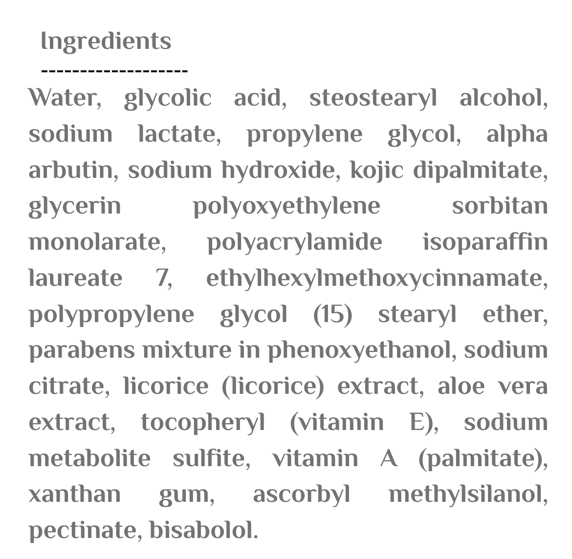 يعمل هذا الكريم على إزالة البقع الداكنة والبنية الناتجة عن التقدم في العمر أو التعرض للشمس أو استخدام مستحضرات غير مناسبة، دون التسبب بآثار جانبية مثل الهيدروكينون.