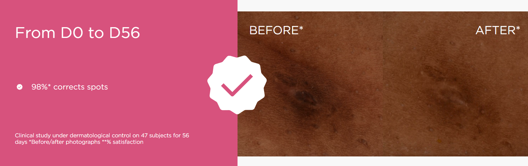 يساعد على تصحيح البقع الداكنة الثابتة والمرئية بفعالية ملحوظة، مع وقاية SPF15 للحد من ظهور تصبغات جديدة.