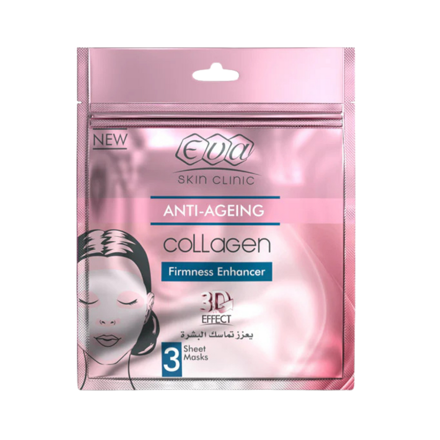 Eva skin clinic collagen sheet mask 3 sheet mask - 42ml |ايفا سكين كلينك ماسك كولاجين للوجه – 3 أقنعة (42 مل)