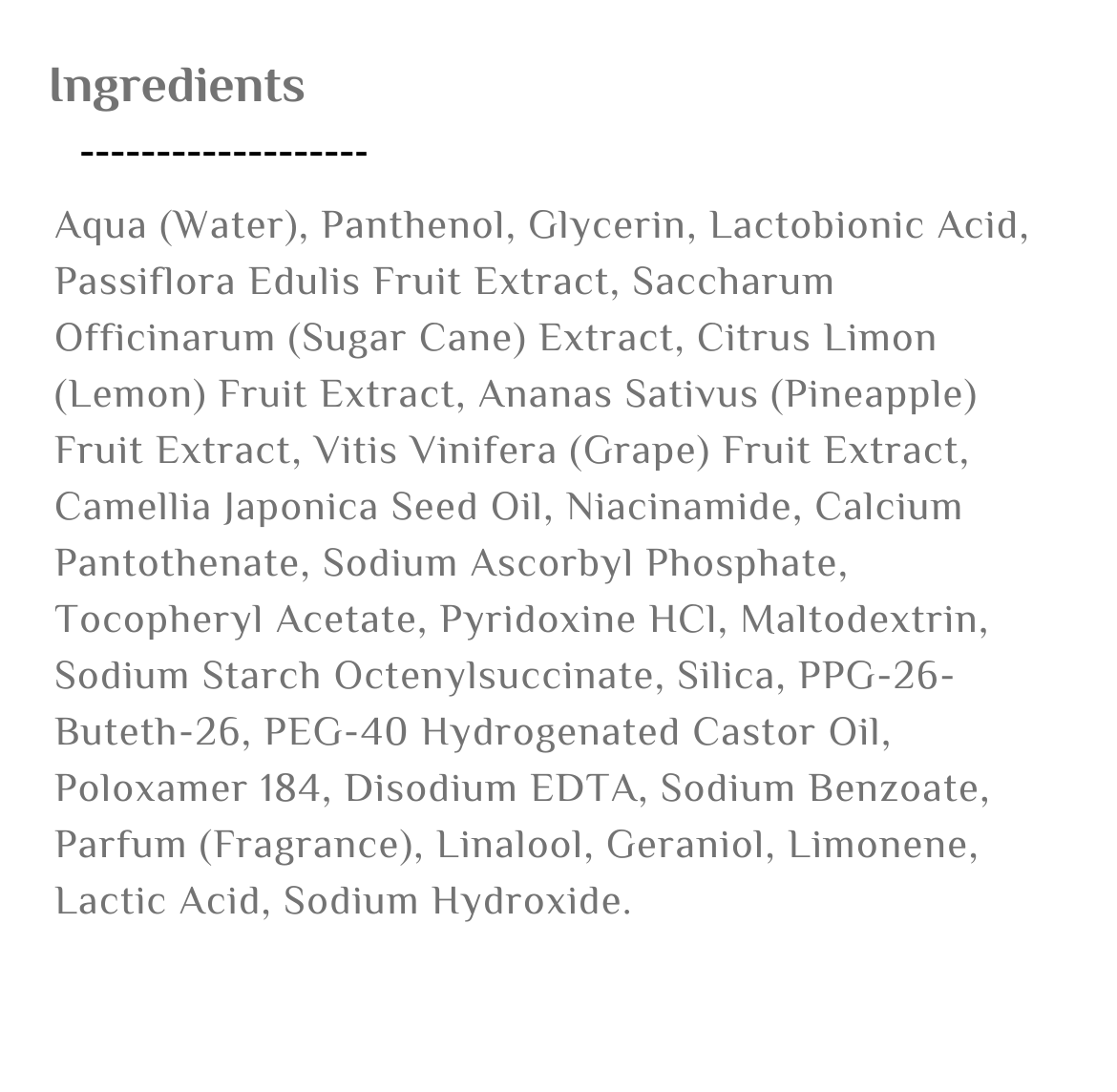 - يحتوي على أحماض AHA وPHA التي تساعد في إزالة خلايا الجلد الميتة وتحسين نسيج البشرة.