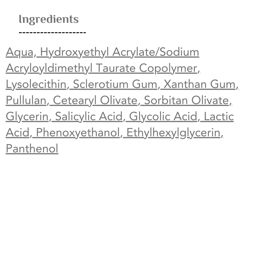 AHA 10%, BHA 2%, بانتينول 2%, ريتينول 0.3%, نياسيناميد 2%, هيالورونيك اسيد 2%