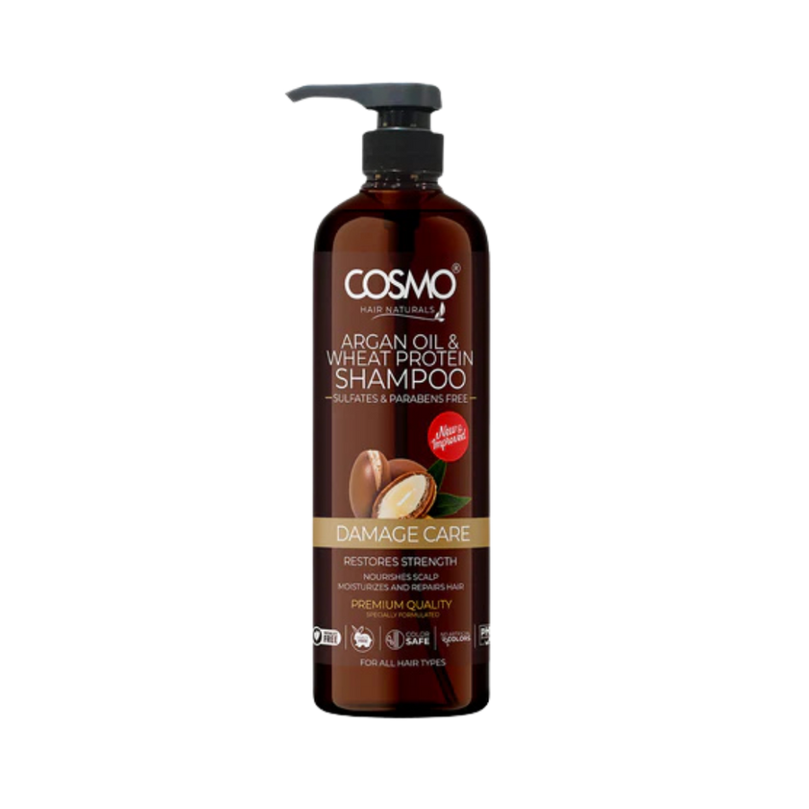 شامبو COSMO Argan Oil يمنحك تجربة عناية فاخرة بالشعر بفضل تركيبته الغنية بزيت الأركان وبروتين القمح المتحلل، التي تعمل على تغذية الشعر بعمق من الجذور حتى الأطراف. يناسب جميع أنواع الشعر، وخالٍ من الكبريتات والبارابين والسيليكون، ليساعد في تقليل تساقط الشعر، ومكافحة القشرة، وعلاج الجفاف. يعيد الحيوية واللمعان لشعرك، ويمنحه كثافة وملمسًا ناعمًا وانسيابيًا.