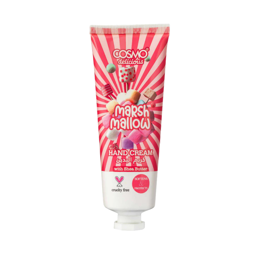 دلّلي يديكِ بلمسة ناعمة وحلوة مع كريم اليدين كوزمو مارشميلو. تركيبة مرطّبة وخفيفة تمتص بسرعة وتترك البشرة ناعمة، رطبة، ومفعمة برائحة المارشميلو الدافئة والسكرية. يساعد على تهدئة الجفاف وحماية اليدين من العوامل اليومية، ليمنحك نعومة تدوم طوال اليوم.