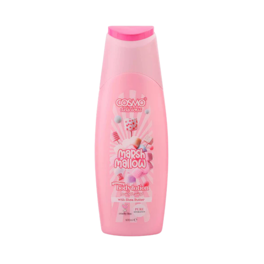 استمتعي بجوّ من السحر مع COSMO Marshmallow Body Lotion الذي يغطّي بشرتكِ برائحة حلوة ونضرة تشبه غزل البنات. كريم الجسم المخفوق هذا يشعر وكأنه فقاعة دافئة على بشرتكِ، إذ يذوب بسرعة ويترك وراءه رائحة حلوة من المارشميلو والفانيليا. بتركيبته الخفيفة والمغذية، سيمنحكِ نعومة حريرية ويُشعركِ كأنكِ تغمرين في الحلويات. هذا اللوشن مثالي للاستخدام اليومي بفضل امتصاصه السريع وملمسه المخملي.