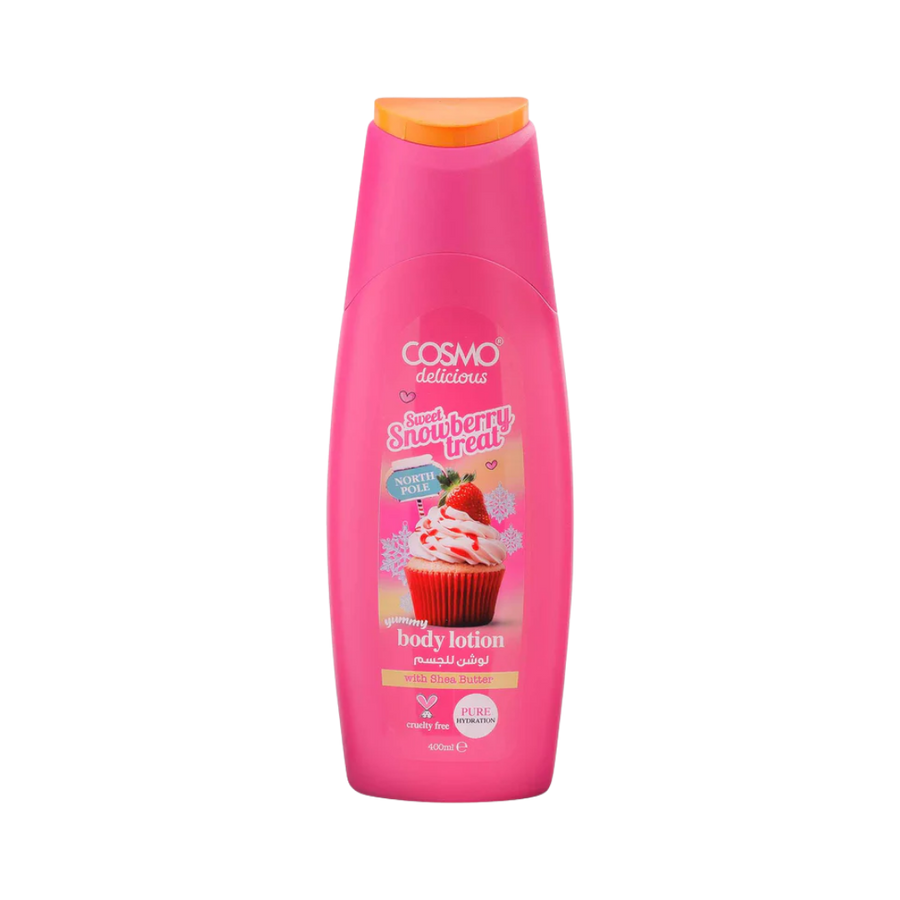 دلّلي بشرتك بلمسة من نعومة التوت الكريمي مع كوزمو سويت سنو بيري تريت لوشن الجسم الفاخر. يتميز بقوام خفيف يشبه موس التوت المخفوق يذوب سريعًا داخل البشرة، ليمنحك ترطيبًا عميقًا ونضارة حريرية دون أي ملمس دهني. يترك بشرتك معطّرة برائحة التوت المثلّج مع لمسة سكرية ناعمة تدوم طوال اليوم. يمنح بشرتك إحساسًا يشبه وضع كريمة حلوة على الجلد—ناعمة، خفيفة، ورائعة الإدمان.
