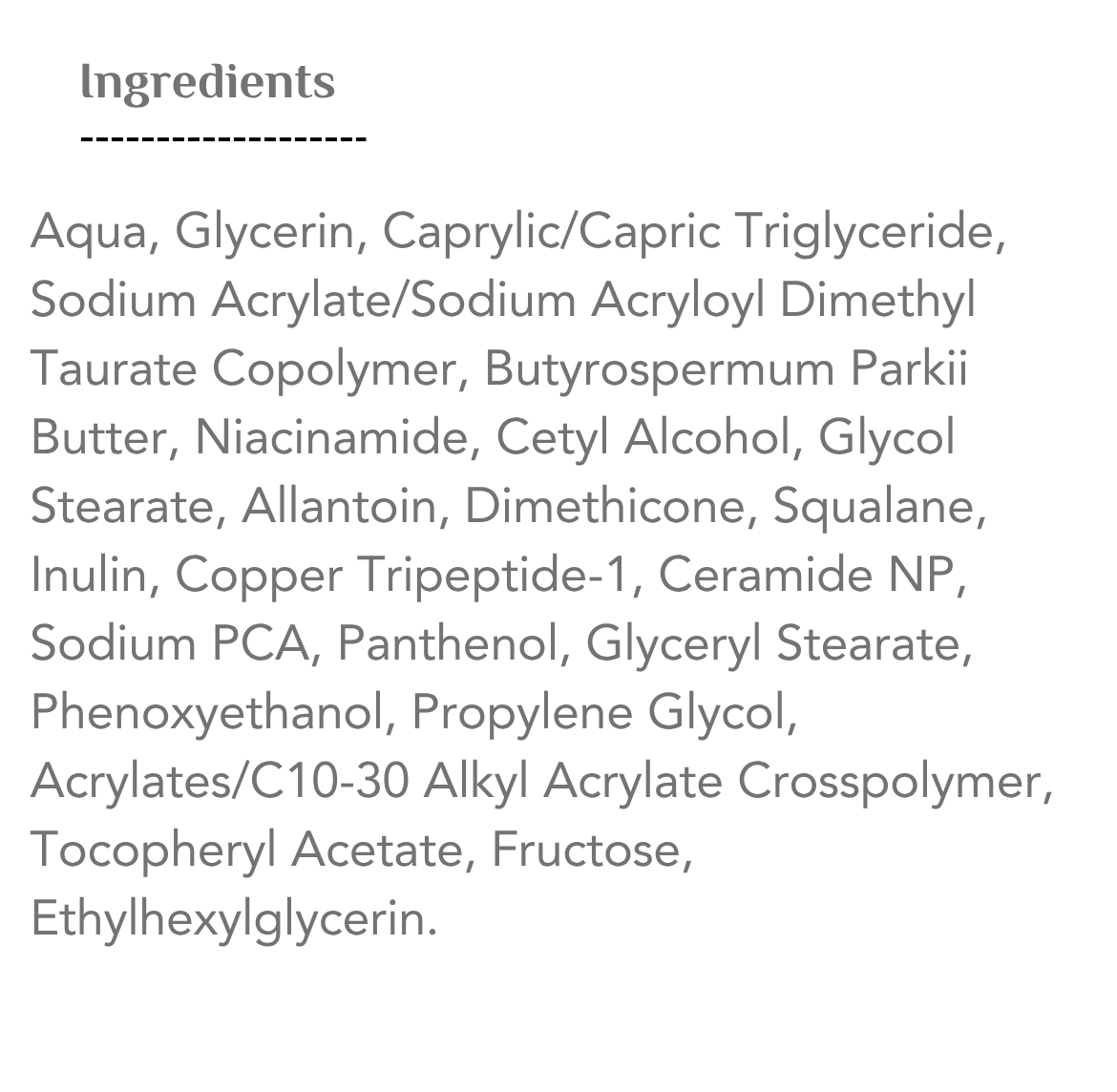 زبدة الشيا, نياسيناميد, بانتينول, سيراميدات, بروبايوتيك, سكوالين