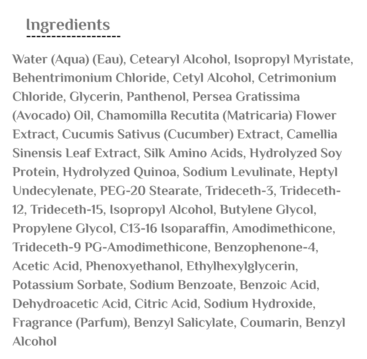 خلاصة الخيار (Cucumber Extract): تُرطب الشعر وتنعّمه وتُهدئ فروة الرأس.