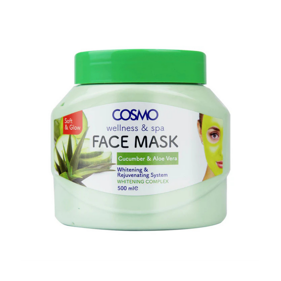امنحي بشرتك انتعاشًا وتجديدًا مع قناع الوجه بالخيار والألوفيرا – تركيبة مهدئة من المكونات الطبيعية المصممة لترطيب البشرة وتهدئتها.