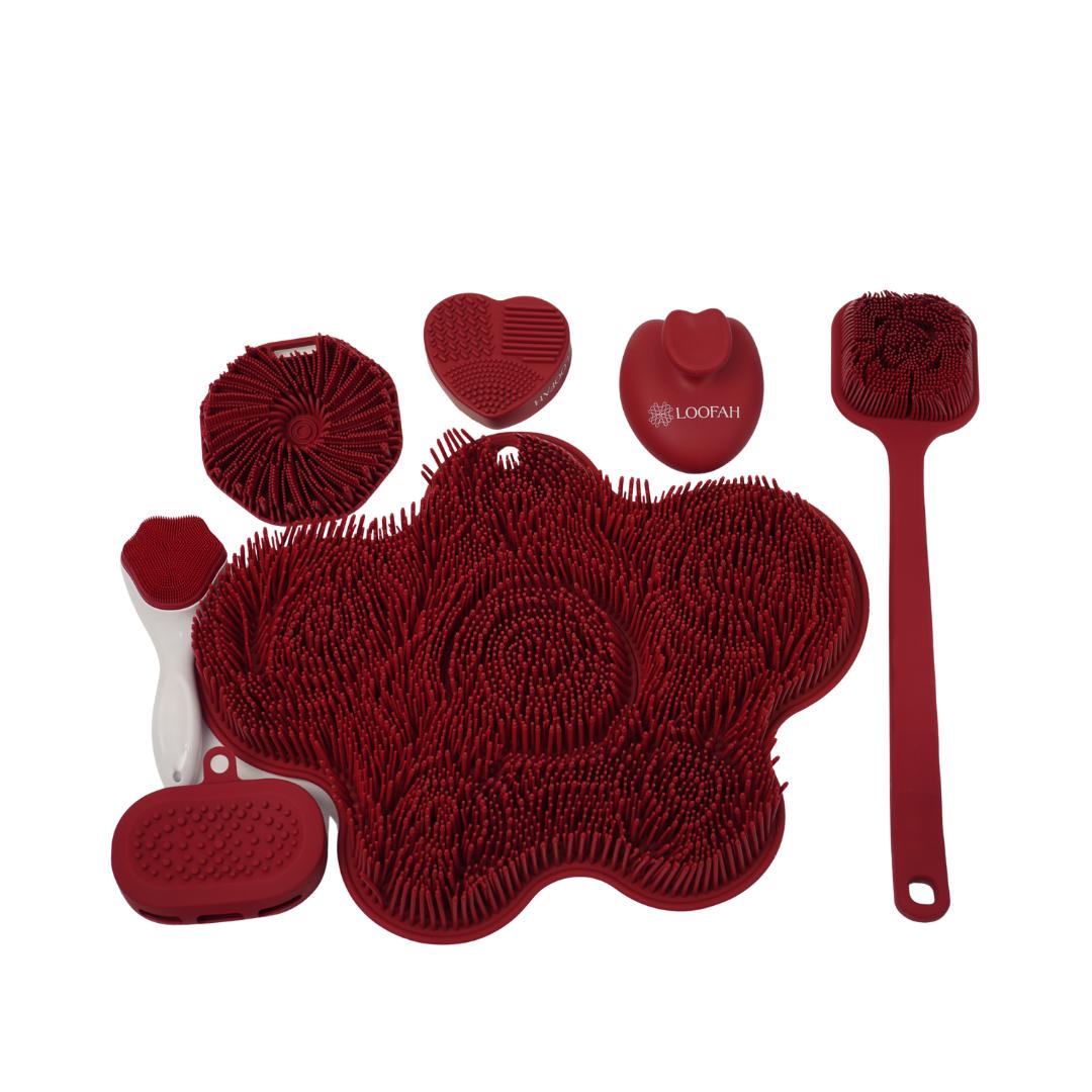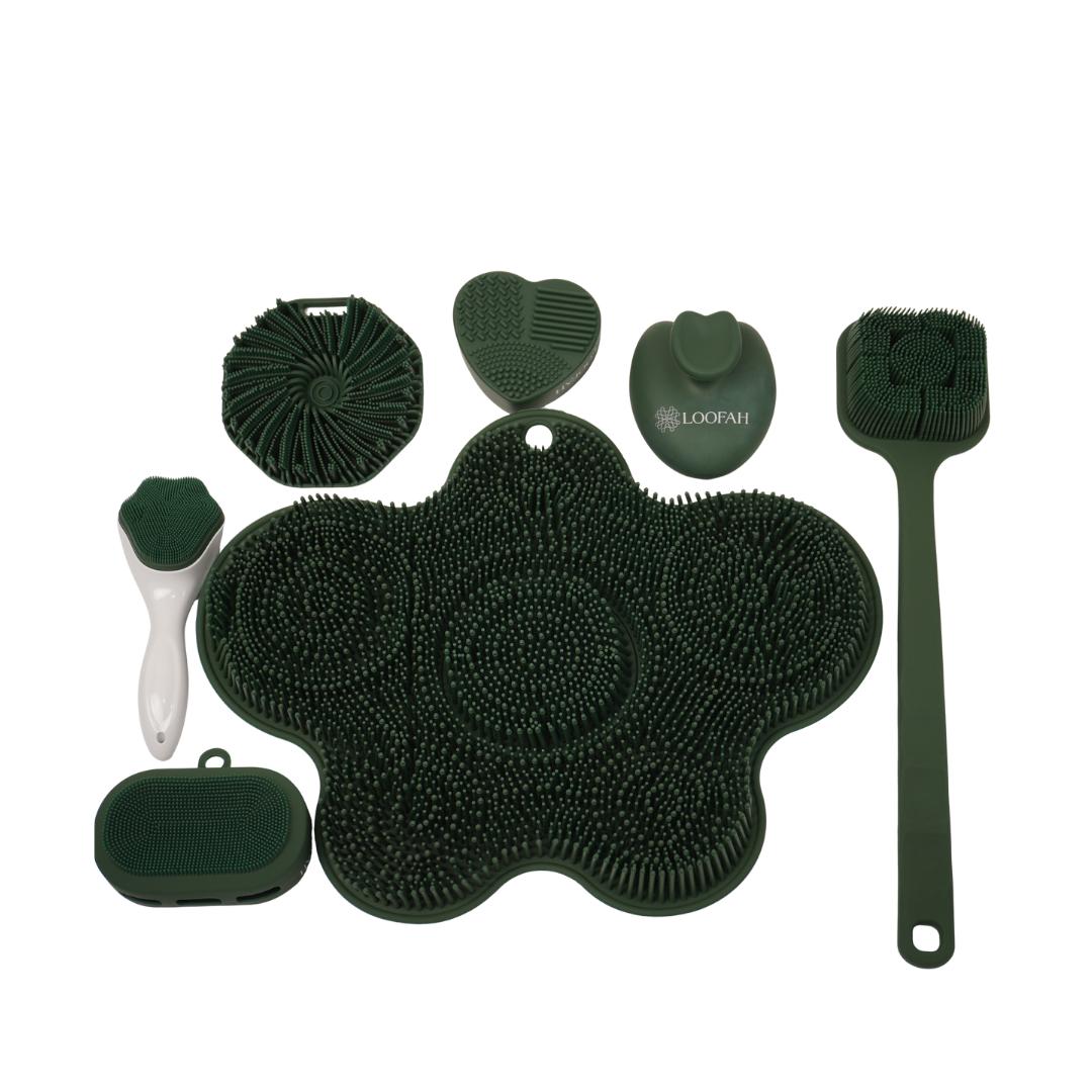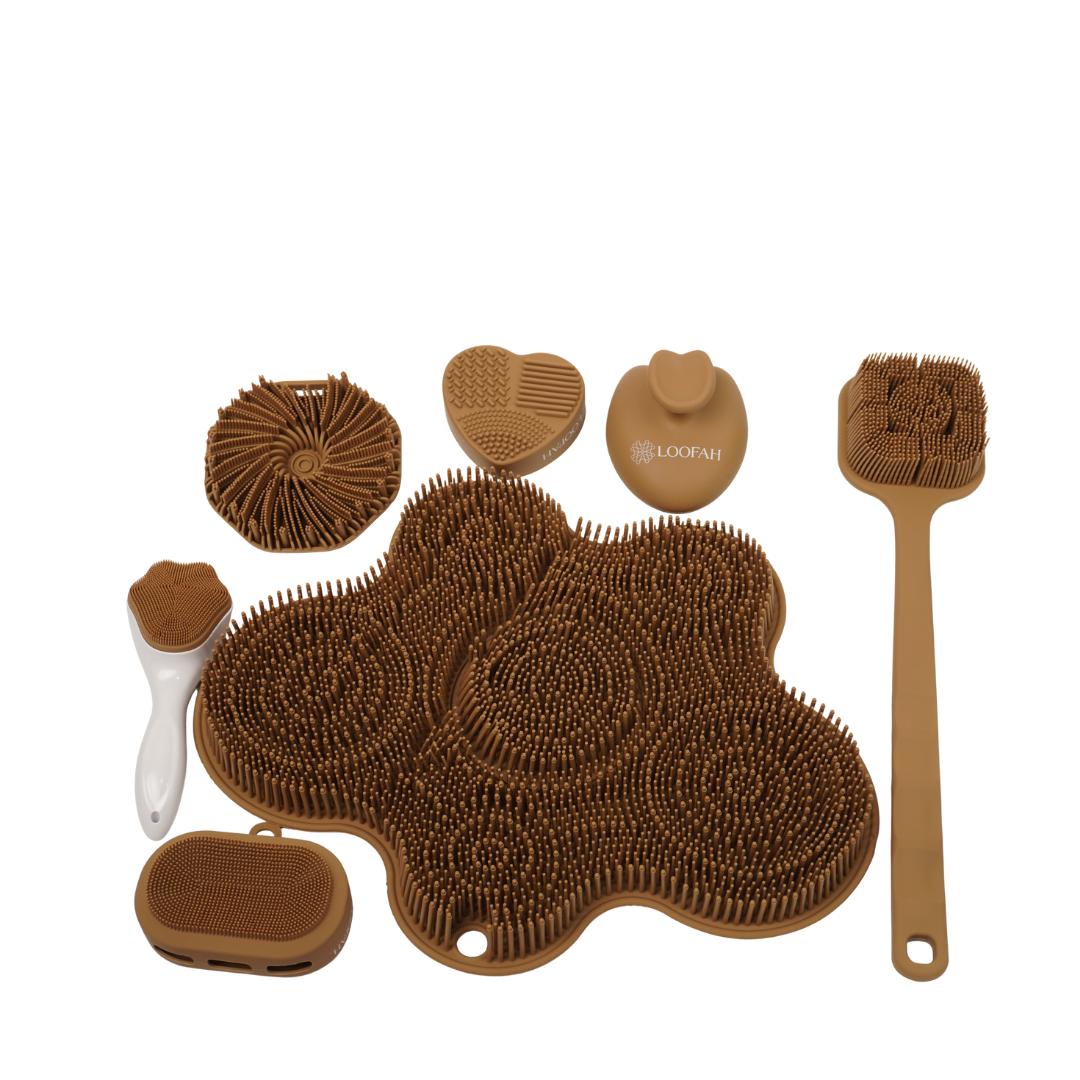 مجموعة استحمام متكاملة مصممة لتجربة تنظيف مريحة وصحية أكثر من أي وقت مضى. مصنوعة من سيليكون عالي الجودة مضاد للبكتيريا، لطيف على البشرة ولا يسبّب تهيّج. تساعدك هذه المجموعة على تنظيف الجسم بعمق، إزالة الجلد الميت، وتحفيز الدورة الدموية للحصول على بشرة ناعمة ومنتعشة بعد كل حمّام.