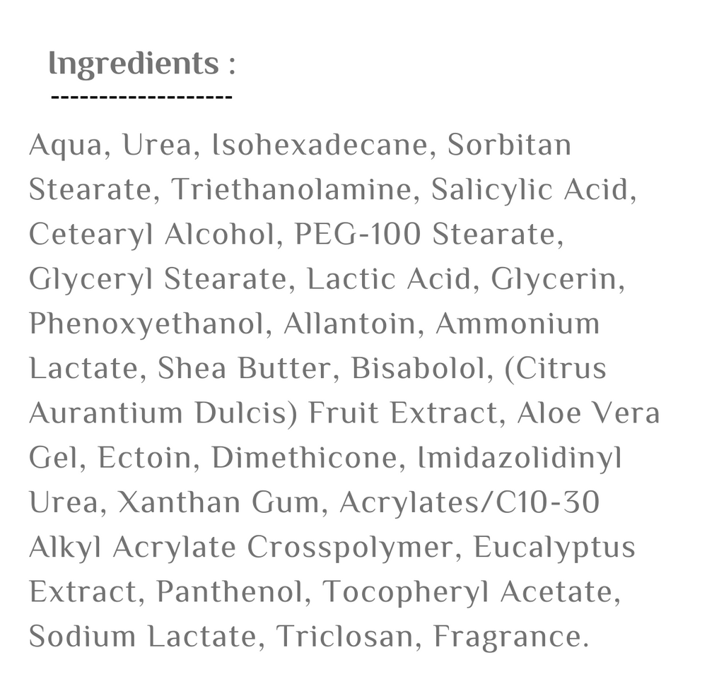 المكونات الاساسية:يوريا 30%, ساليسيليك اسيد, لاكتك اسيد