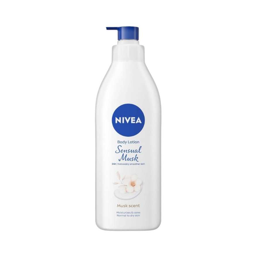 لوشن الجسم نيفيا سينشوال مسك NIVEA Sensual Musk يمنح بشرتك ترطيبًا مكثفًا يدوم لأكثر من 48 ساعة بفضل تقنية Hydra IQ المتطورة. يتميز بعطر المسك الدافئ والفخم الذي يدوم طويلًا، ليمنحك إحساسًا بالنعومة والراحة طوال اليوم. تركيبة غنية تناسب البشرة العادية والجافة، وتساعد على تحسين مرونة البشرة وملمسها لتبدو أكثر نعومة وصحة.يحتوي على عطر وكحول وسيليكون ، خالي من البارابين.