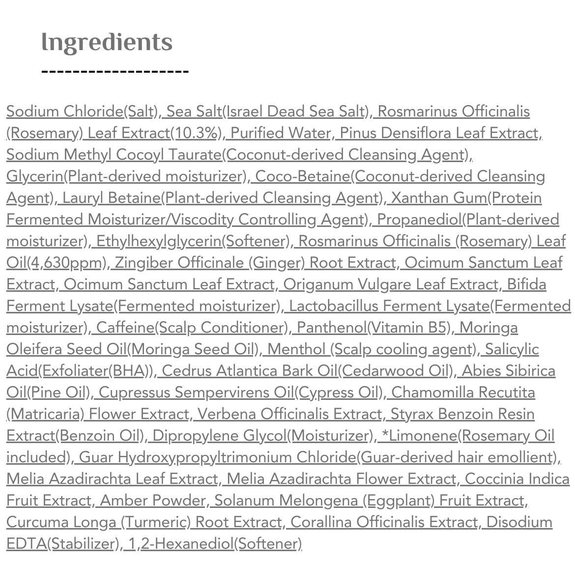 ملح بحيرة الأنديز، إكليل الجبل، حمض بيتا هيدروكسي الأنيسول، البروبيوتيك، الكافيين