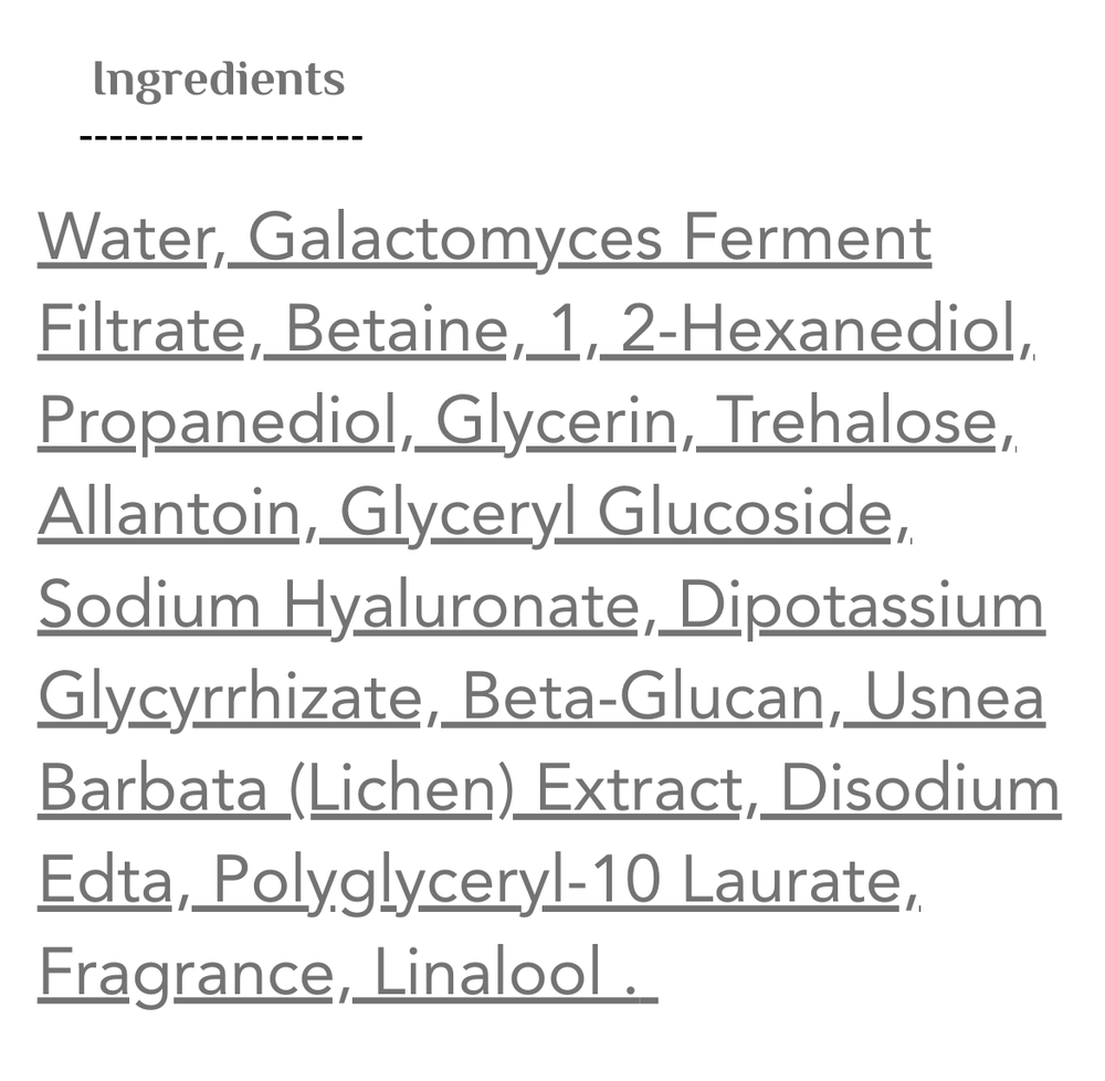 Galactomyces Ferment Filtrate: يساعد على تهدئة البشرة وتحسين ملمسها.