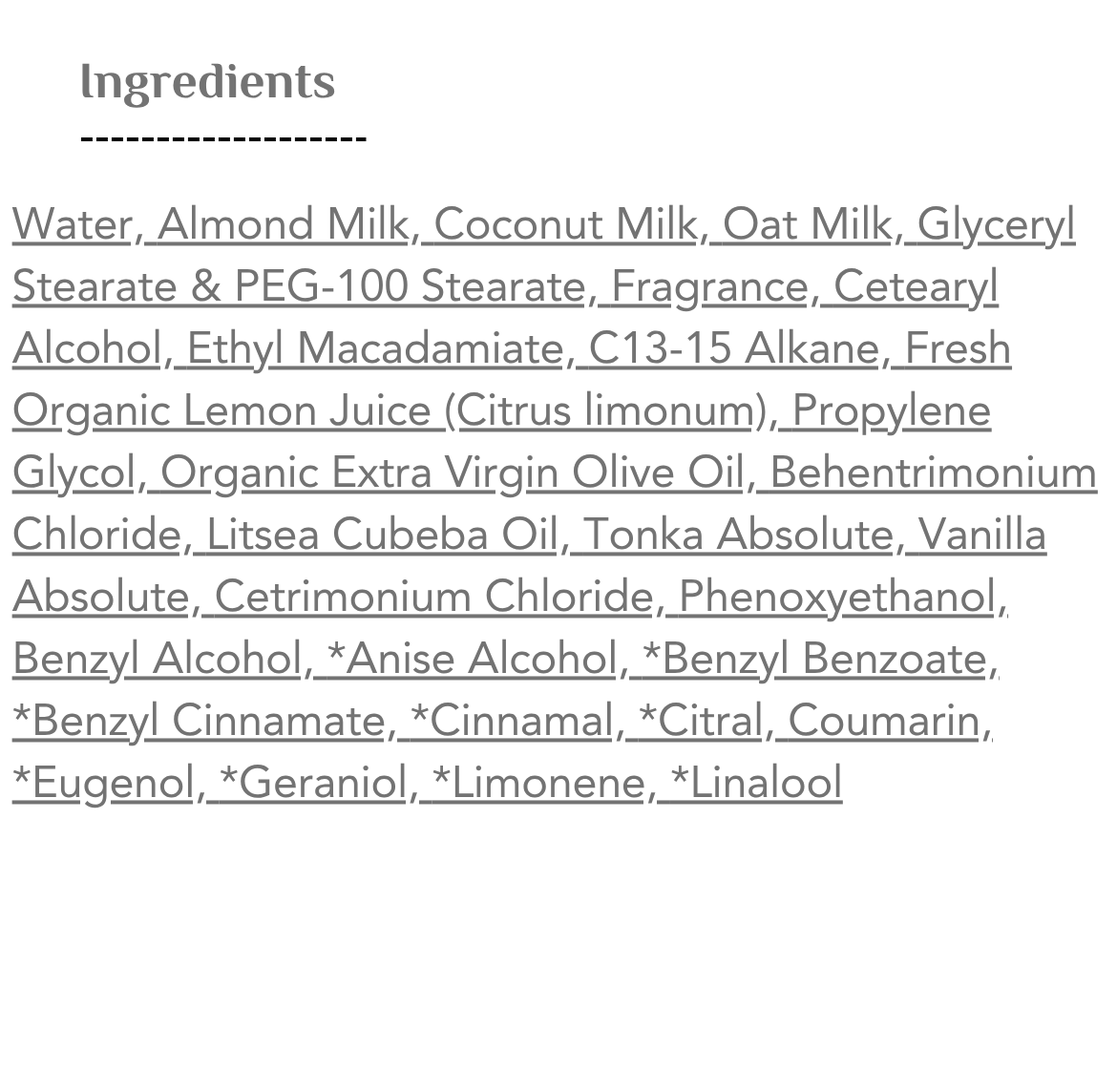 هل تحتاجين إلى المزيد من الترطيب لشعرك؟ استخدمي هذا البلسم المكثف الذي يوفر ترطيبًا فوريًا، حيث يمكن رشه مباشرة على الشعر أو في يديك بعد غسل الشعر بالشامبو والبلسم كالمعتاد. تركيبة خالية من منتجات الألبان تحتوي على مزيج من حليب اللوز وجوز الهند والشوفان، مما يوفر نعومة وراحة فورية. كما يضيف عصير الليمون الطازج لمعانًا، ويغذي زيت الزيتون البكر الشعر ويحميه من العوامل البيئية.