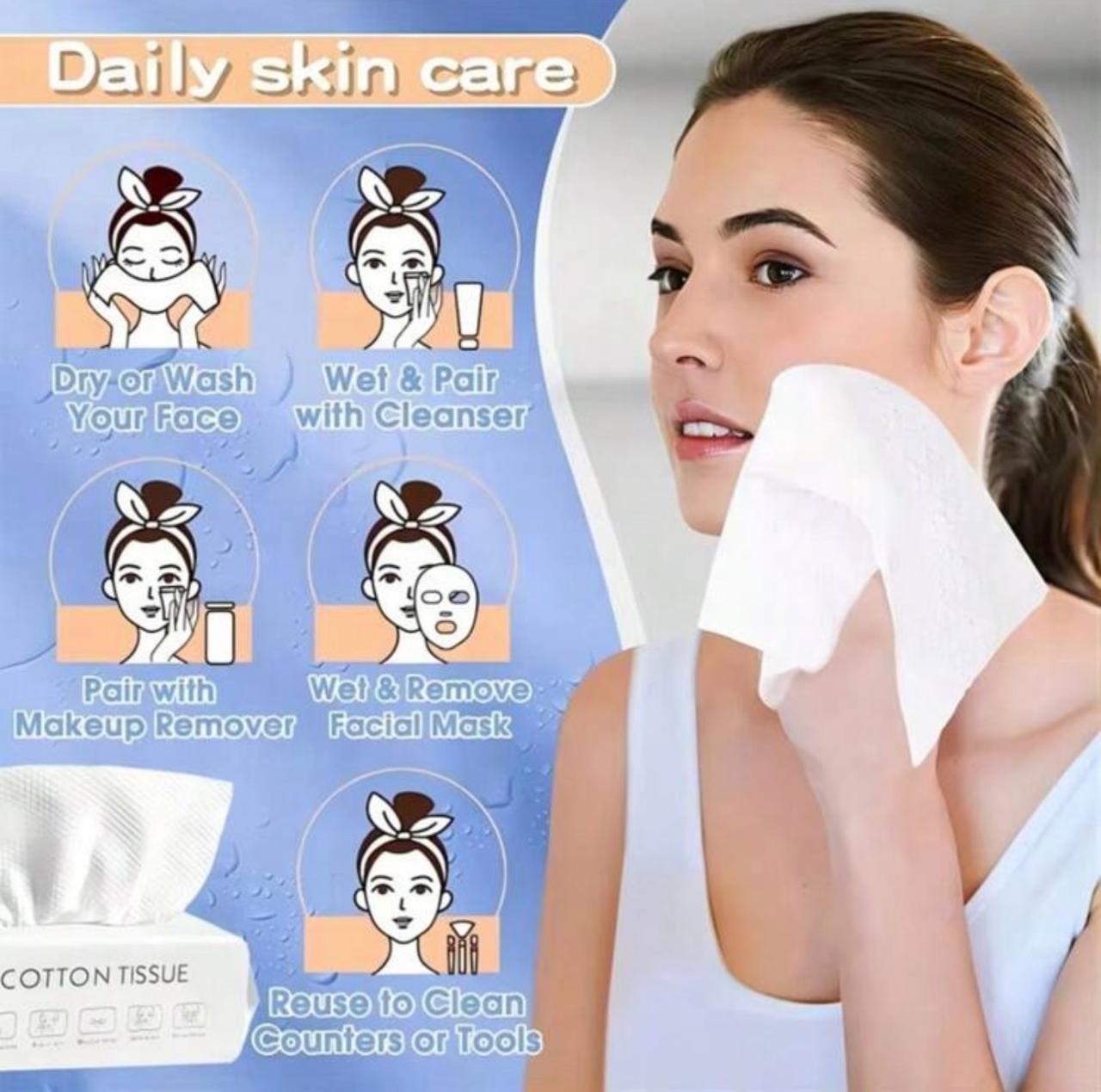 مناديل الوجه القطنية مصنوعة من ألياف قطنية طبيعية ناعمة 100%، مصمّمة خصيصًا للعناية اليومية بالبشرة. تتميز بملمسها اللطيف والخالي من الروائح والعطور، مما يجعلها مثالية للبشرة الحساسة، للأطفال، وللاستخدام اليومي.