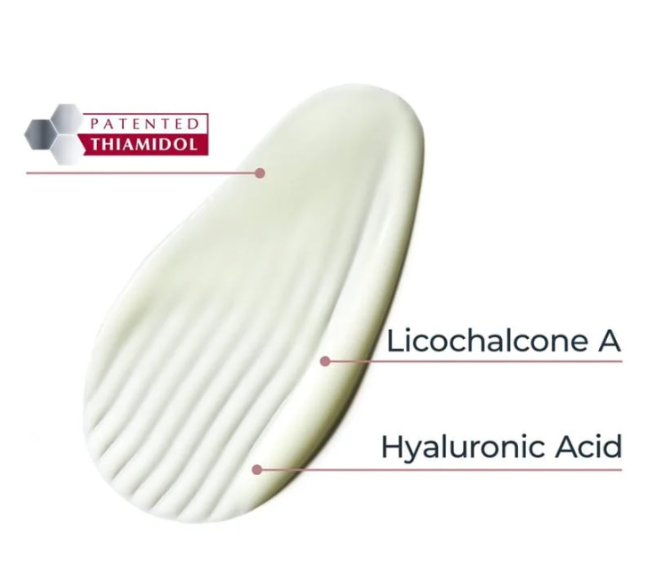 ثياميدول, ليكوكالكون أ, هيالورونيك اسيد, مستخلص جذر عرق السوس