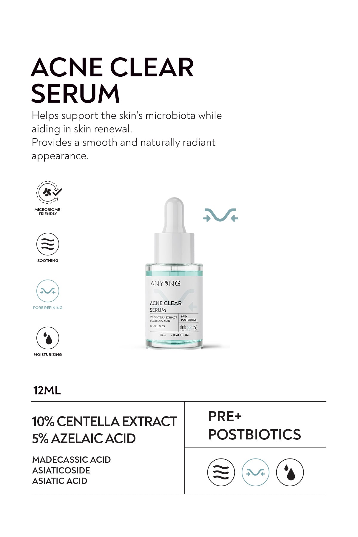 طقم Anyong Anti-Acne Kit هو روتين علاجي متكامل لمدة 30 يومًا مكوّن من 3 خطوات أساسية لتنقية المسام وتقليل ظهور الحبوب. يجمع بين تونر مقشّر لطيف، سيروم مهدّئ مضاد للحبوب، وكريم خفيف خالٍ من الزيوت، ليعمل على موازنة إفراز الدهون، تنظيف المسام بعمق، وتسريع تجدد البشرة. تركيبته مدعّمة بـ AHA-BHA-PHA، ومستخلص السنطيلا الآسيوية، والأحماض المهدّئة التي تمنح بشرتك مظهرًا أنقى وأنعم مع استخدام منتظم.