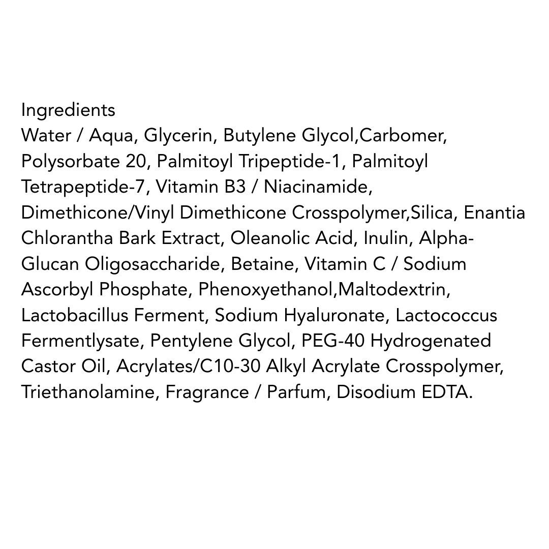 مرطب للبشرة بقوام جل , يحتوي على مزيج من البروبيوتيك، حمض الهيالورونيك، فيتامين سي والبيبتيدات ، يعمل على تجديد البشرة وتحقيق التوازن المثالي لها. يساعد هذا الجل في تحسين مظهر البشرة وملمسها، ويمنحها مظهراً صحياً ومتوازناً بفضل تركيبته الفعّالة.