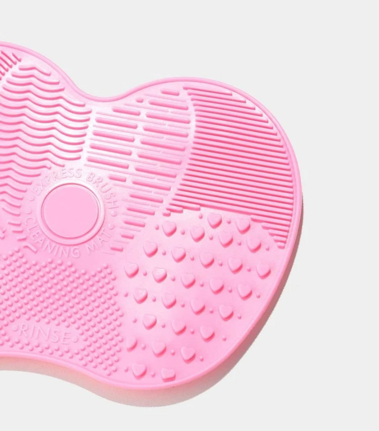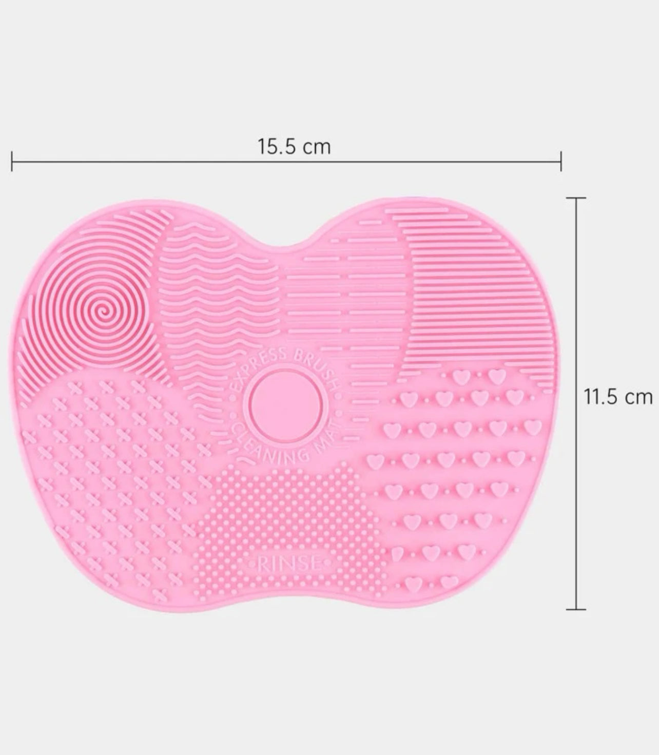 أداة تنظيف فرش المكياج باللون الوردي. تتميز الأداة بمقاسات 15.5 سم × 11.5 سم وتحتوي على مجموعة متنوعة من الأنماط والنتوءات المصممة خصيصًا لتنظيف فرش المكياج بفعالية. كل نمط على اللوحة يساعد في إزالة بقايا المكياج والأوساخ من الفرش، مما يجعل عملية التنظيف سهلة وشاملة. يمكن استخدامها مع الصابون أو منظف الفرشاة لضمان بقاء فرشك نظيفة وجاهزة للاستخدام.