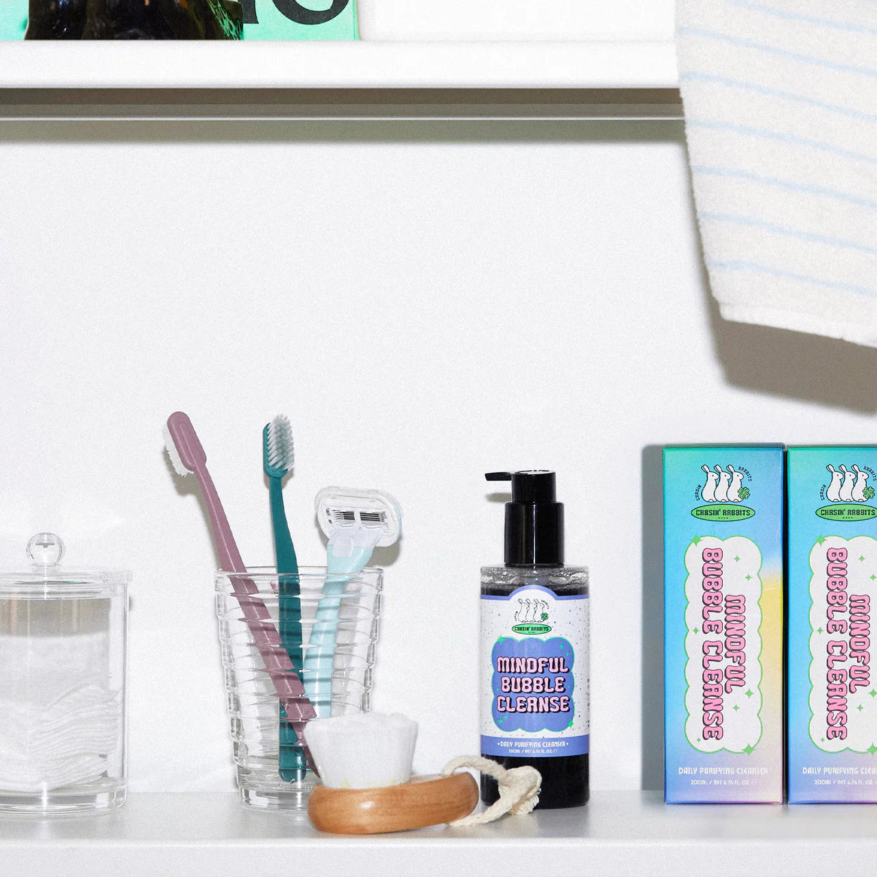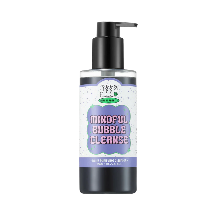 غسول الفقاعات Chasin’ Rabbits Mindful Bubble Cleanser هو غسول كوري نباتي غني بالفحم النشط لتنقية المسام بعمق وإزالة الدهون والشوائب المتراكمة. يمنح بشرتك مظهراً نقيّاً ومشدوداً، بفضل تركيبته المرطّبة بماء البامبو والمستخلصات النباتية التي تعيد الإشراقة والترطيب للبشرة. خالٍ من المكوّنات الحيوانية وصديق للبيئة من العبوة حتى المحتوى، ليمنحك عناية فعّالة وواعية بالبشرة والكوكب.مثالي لتنظيف يومي عميق للمسام، إزالة الشوائب والدهون، وتحسين ترطيب البشرة وإشراقها.