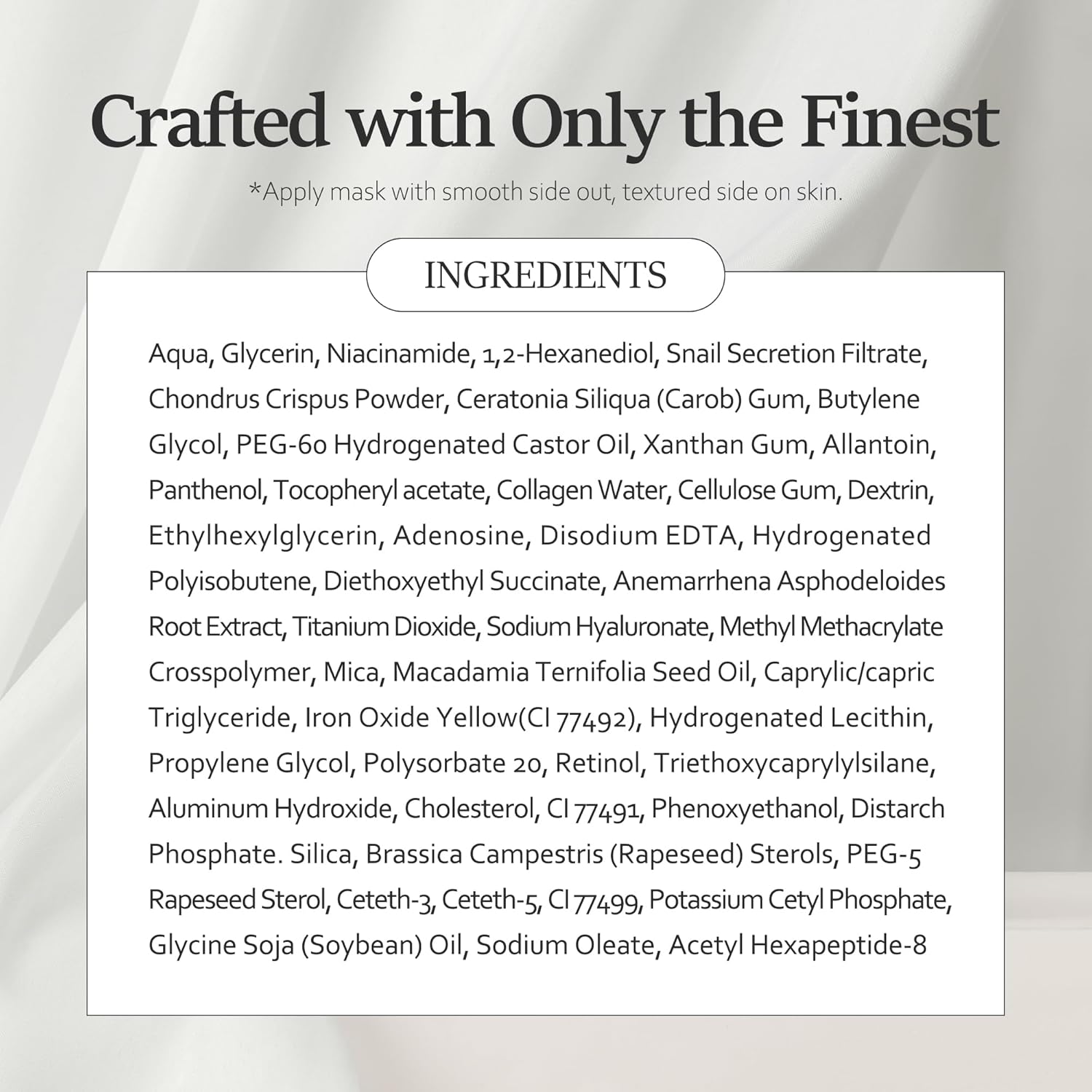 قناع الوجه الجلّي المكثف من It’S SKIN يحتوي على خلاصة إفراز الحلزون والكولاجين منخفض الجزيئات، وهو مصمم لمنح بشرتك نعومة وشدّاً مع تحسين مرونتها. يجمع بين المكونات الفعّالة مثل الريتينول و النياسيناميد لتحسين مظهر البشرة المتقدمة في السن وتحقيق إشراقة صحية.